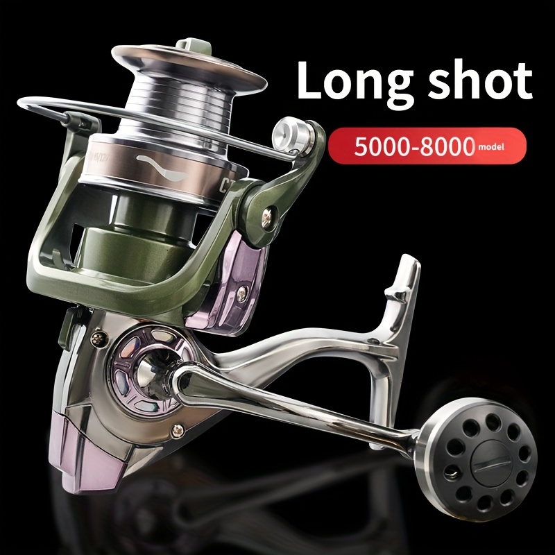 TEMU 스핀닝 롱 캐스트 금속 휠 낚시릴, 미러 그린 글레이즈 마감, 손잡이 없는 교체 가능한 역방향 노 킨 포인트 디자인, 고강도 대형 사이즈 5000-8000 9000 10000 12000 모델 풀 메탈 자동 라인 컵 풋 홀더 록커 암 그립 모든 물리 지역 해변 낚시에 적합합니다.