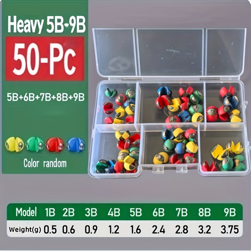 TEMU 50개 컬러풀 탈착식 스위블 낚시용 무게 - 2B-6B 중간 & 5B-9B 헤비듀티, 랜덤 색상 혼합, 민물/해수/배용, 보트 및 래프트 낚시용, 어부를 위한 이상적인 선물, 튼튼한 낚시 장비