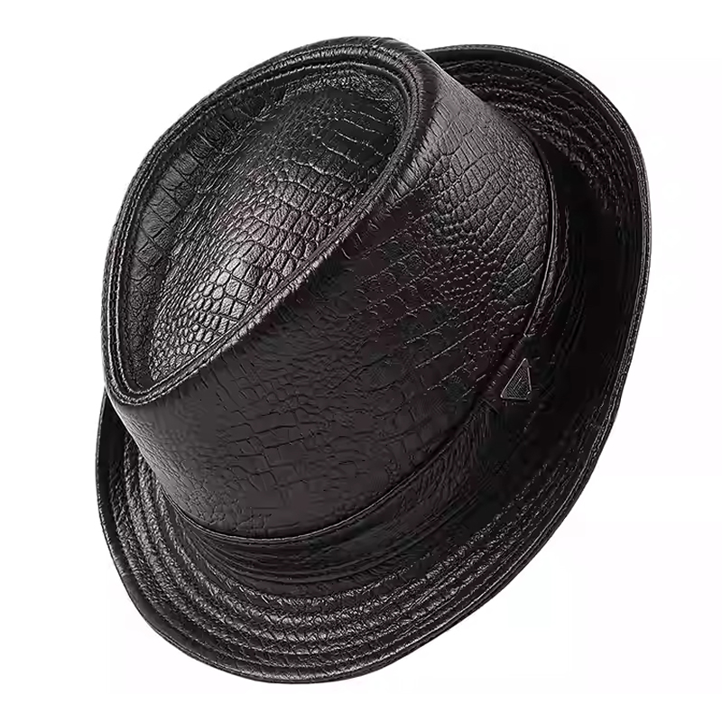 TEMU 남성용 정품 가죽 페도라 모자 - 클래식 블랙, 우아한 빈티지 포멀 & 캐주얼, 일상 및 특별한 날에 내구성 - 아빠, 남편, 비즈니스 또는 결혼식 선물로 이상적인 아버지의 날 선물, 다목적 헤드웨어, 크로커다일 텍스처, 텍스처드 마감|남자모자