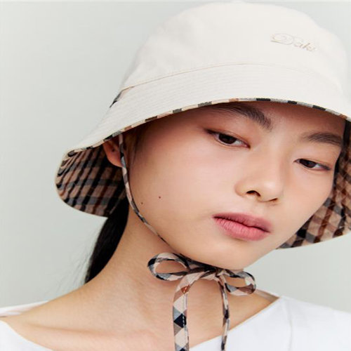 드에르 체크배색파이프 와이어챙 코튼 버킷햇 벙거지 봄 여름 중년모자 2color