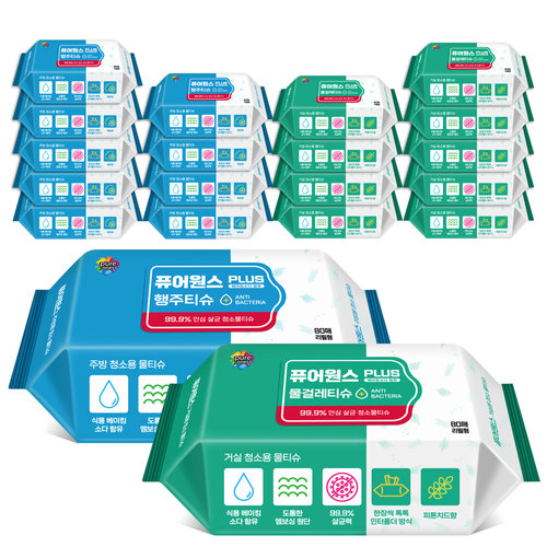 [퓨어원스+]홈케어 청소물티슈 거실용 80매x10팩+주방용 80매x10팩(리필형)-손걸레,행주대용