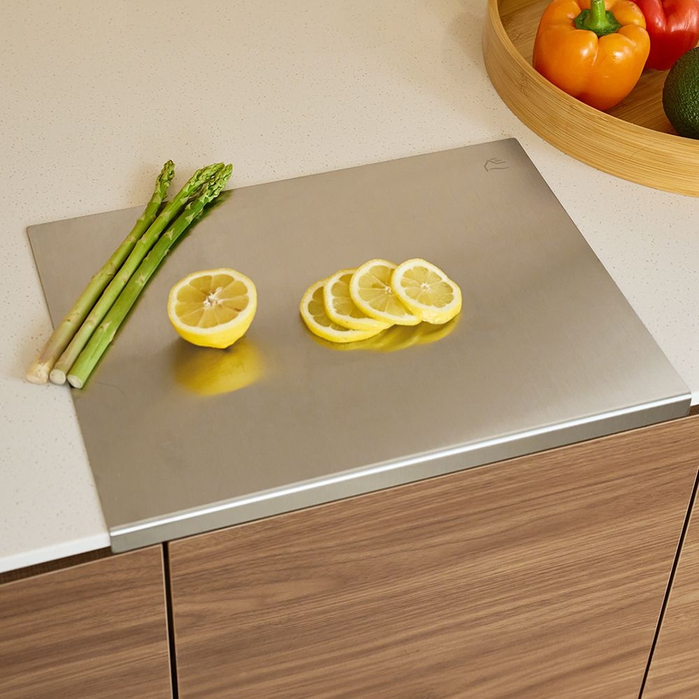 TEMU 스테인리스 스틸 양면 도마 - 내구성 강한 304 스테인리스, 미끄럼 방지 실리콘 그립 & 긁힘 방지 표면, 생고기용/조리용 양면 도마, 식기세척기 안전 주방 도마 (과일·채소·육류), 공간 절약형 디자인