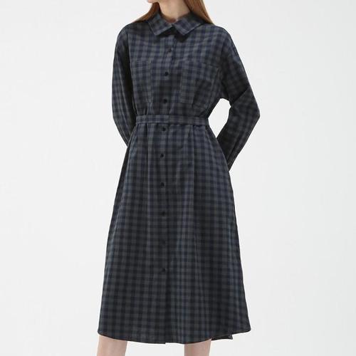 스테파니 HC07 브이넥 면 체크 롱원피스 A25SO5105