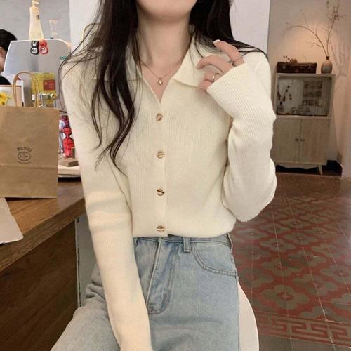 [셀럽하우스]여성 TWTU4056 페미닌 골지 카라 단정한 단추 니트 가디건