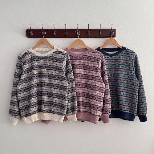 [다잇템_패션]여성 골지 빅사이즈 패턴 FW 단추 티셔츠
