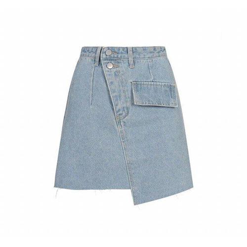[바닐라비]여성 투버튼 사선 컷팅 데님 스커트