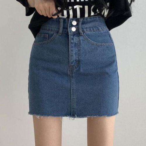[다잇템]여자 봄 레트로 데님 버튼 청치마 데님 스커트