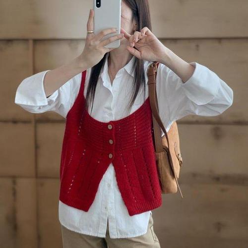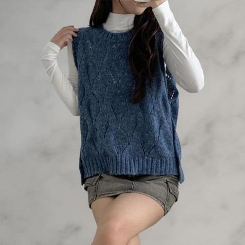 [신상오픈런]여성 펀칭 디자인 반버튼 니트 조끼 가을 레이어드용