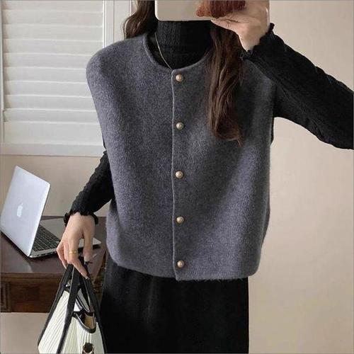 [셀러허브_여성트랜드패션]Rly 여성 단정한 라운드넥 금장 단추 니트 조끼 민소