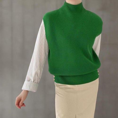 [신상오픈런]여성 골지 니트조끼 금장단추 박시핏 목폴라 비스코스