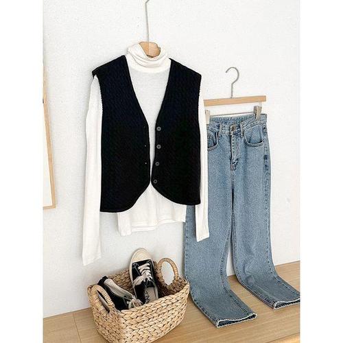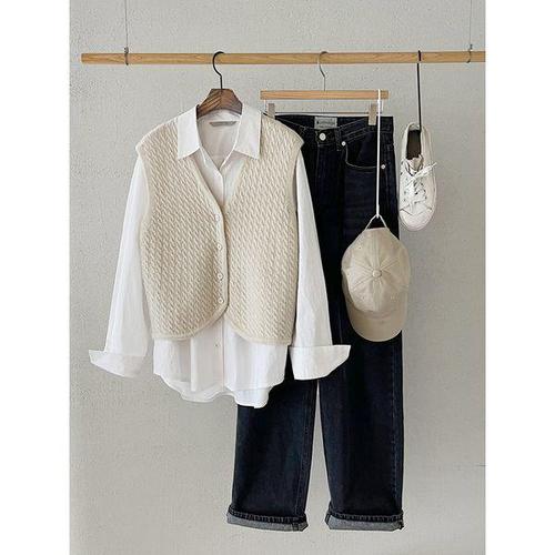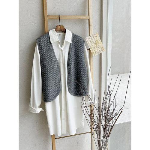 [쉬즈미스] 라운드넥 버튼업 니트 베스트_SSKVTO42050