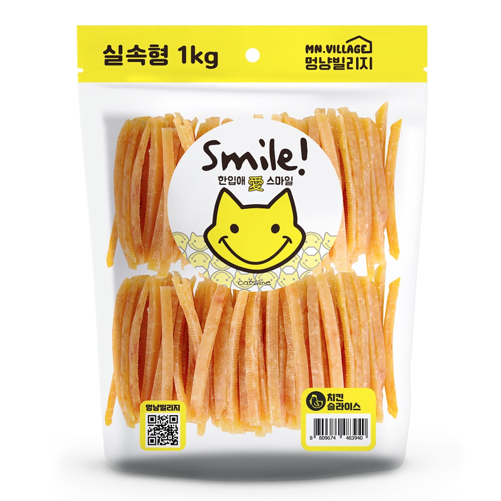 스마일 치킨 슬라이스 1kg 대용량 강아지 닭가슴살 간식