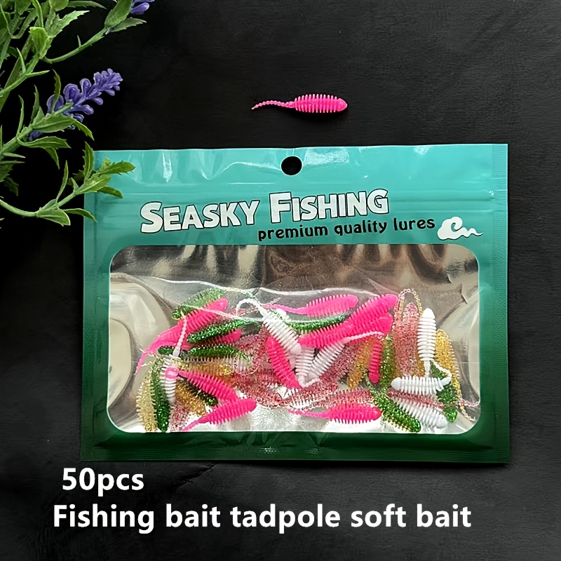 TEMU 50개 소프트 베이트 아리따운 개구리 꼬리 루어 | PVC 소형 바늘 꼬리 웜, 담수 및 해수 낚시용 멀티 컬러 혼합 세트, 겨울철 낚시 적합
