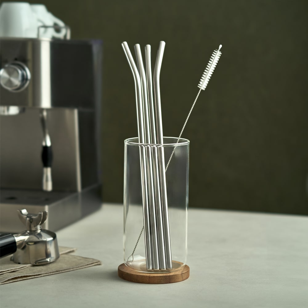 에스테반호프 커브형 스텐 대형빨대4p+세척솔1p세트 세척용 빨대청소