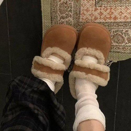 [더구두]무스탕 스웨이드 뽀글이 벨크로 통굽 메리제인 털로퍼(2cm)-2590