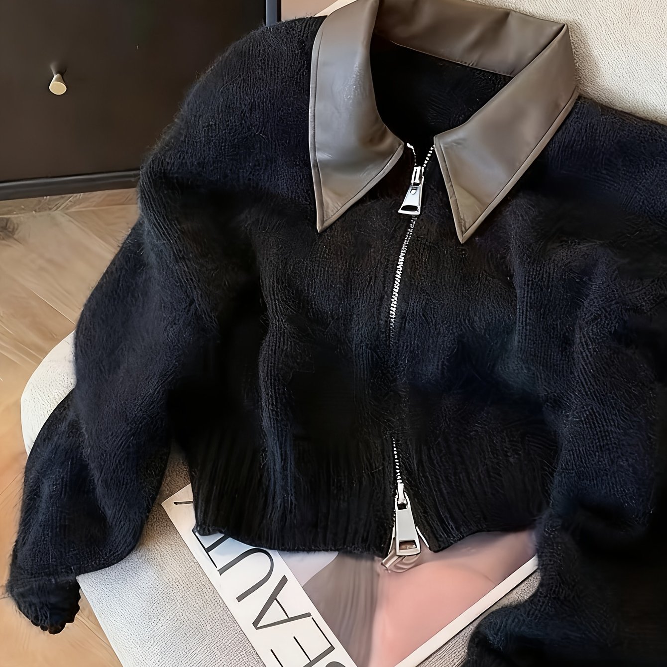 따뜻한 아우터웨어 더블 지퍼 칼라 단품 헤비웨이트 동대문 스타일 출퇴근 패션 한국 루즈핏 니트 가디건