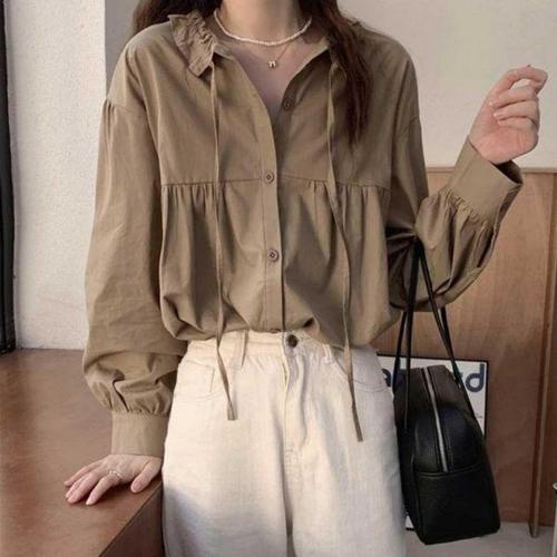 더블버튼블라우스 무드 여성봄블라우스 셔링 땡땡 WFLPSAQ