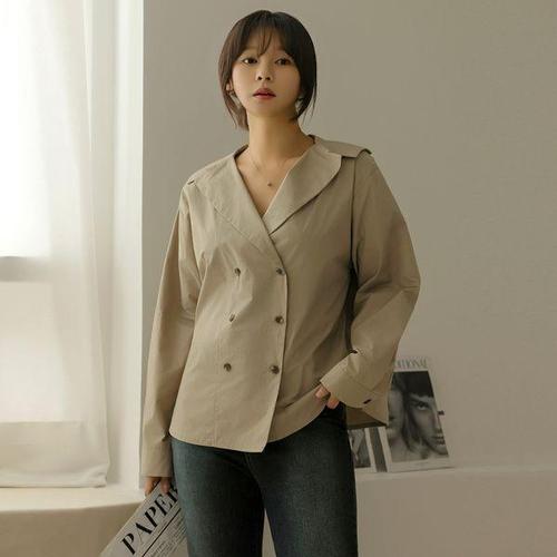 [아리엘스타일]숄카라 더블버튼 페플럼 탑상의 제네바블라우스