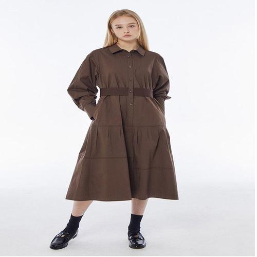 [더아이잗]허리 밴딩 롱 셔츠 원피스