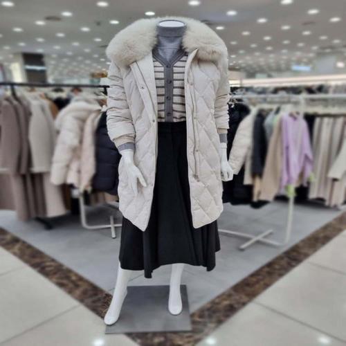 [더아이잗]폭스퍼 후드 구스다운 롱 패딩 점퍼