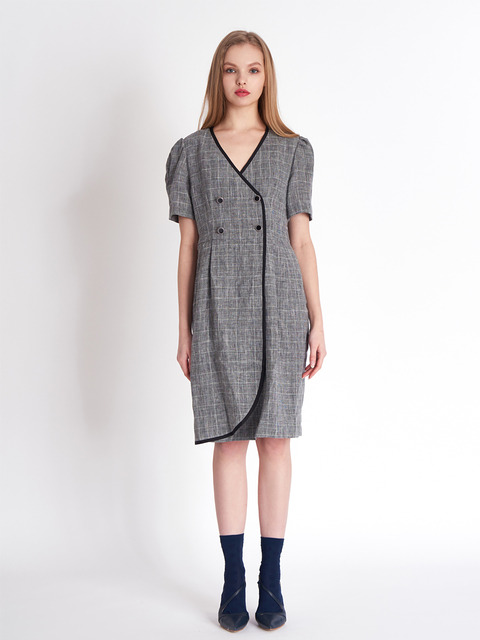 [프릭스] 글렌체크 린넨랩 드레스