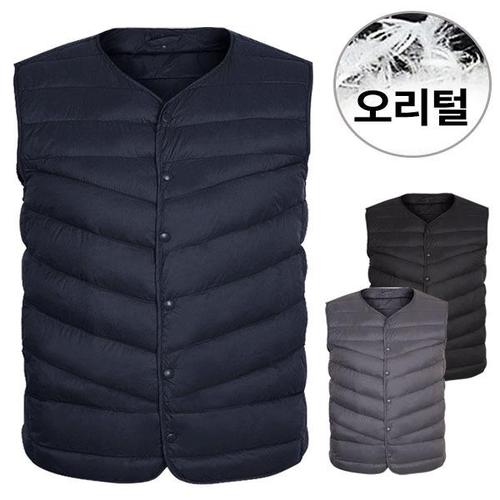 남자 조끼패딩 베스트 점퍼 캐주얼 덕다운 경량 브이넥 정장 슬림 보온 비즈니스