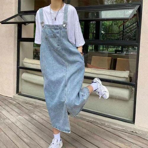 캐주얼 데님 여성 멜빵 롱 원피스 루즈핏 편한 예쁜
