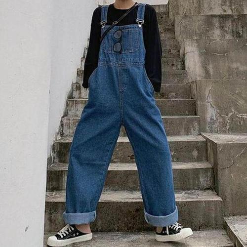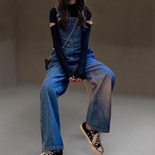 여성 멜빵 와이드핏 데님 점프수트 트렌디한 스타일 (WFK84QM)
