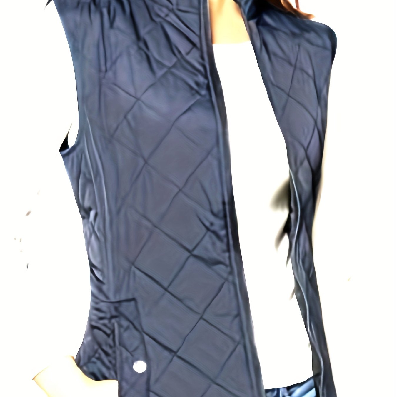TEMU 여성용 경량 퀼팅 스탠드 칼라 지퍼 조끼 - 겨울 따뜻함, 신축성 없는 원단, 스탠드 칼라 클로저, 단색 캐주얼 레이어링, 캐주얼 복장, 겨울 의류, 내구성 좋은 아우터, 다용도 아우터, 오피스룩