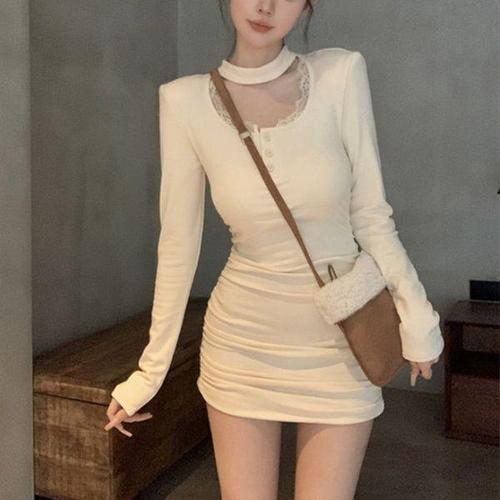 [에이치플러스몰]여성 셔링 레이스 단추 미니 원피스 1P 데이트 치마