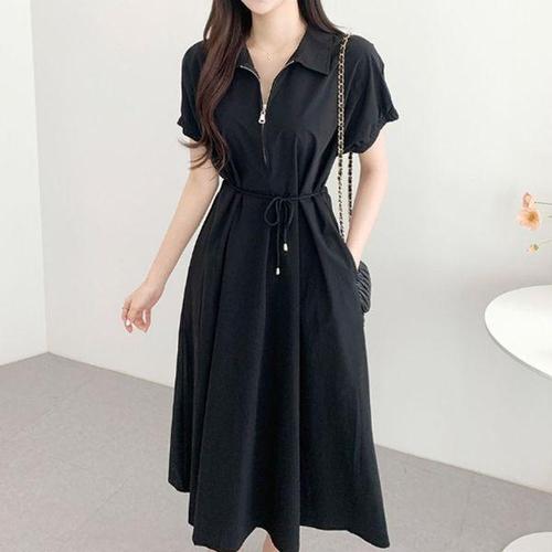 [에이치플러스몰]여성 벨트 A라인 롱원피스 1P 집업 오픈 출근 데이트