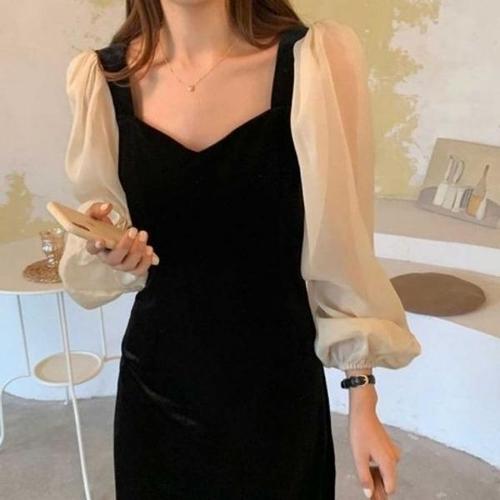 [엄지척]가을 여자 봄 데이트 룩 쉬폰 벨벳 원피스 드레스_19803887_667501