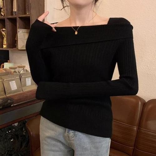 [엄지척]여성 2컬러 여리핏 데이트룩 연말 오프숄더 골지 니트_19804715_667501