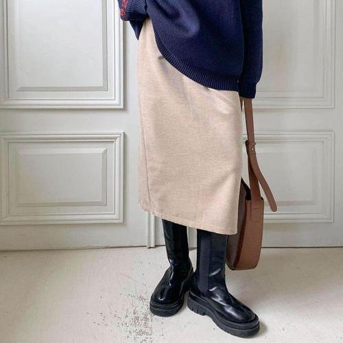 [옷자락] 여자 데일리 무지컬러 뒷트임 h라인 롱 스커트