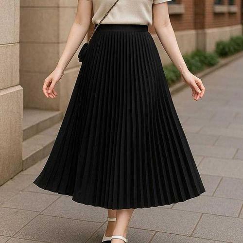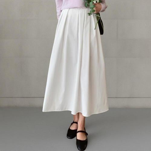 [신상오픈런]여성용 롱 스커트 무지컬러 핀턱 플레어 데일리 룩