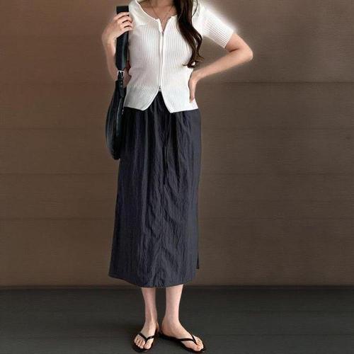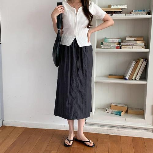 [옷자락] 여자 데일리 바스락 밴딩 h라인 트임 롱 스커트