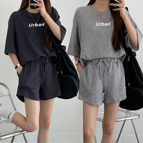 여성 영문 깔끔한 반바지 반팔 데일리 추리닝 세트 WE8E568