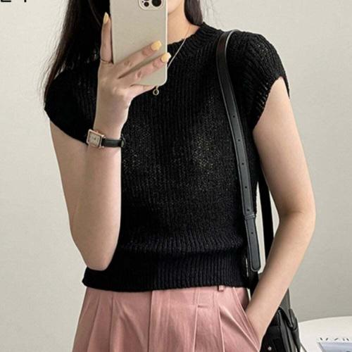 [셀럽하우스]심플 CWET1493 데일리 여성 썸머 라운드 니트 반팔 쇼츠
