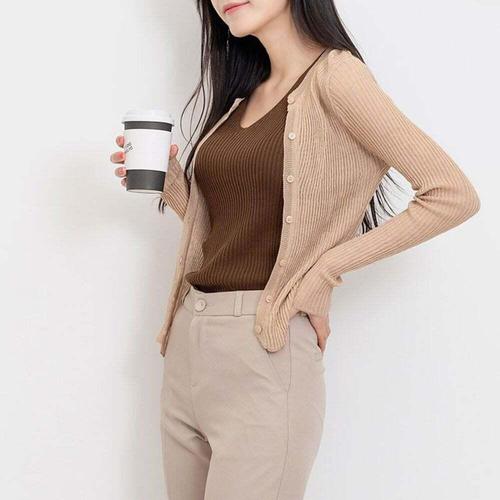 [셀럽하우스]긴팔 ZKRW1700 가디건 니트 데일리 나시 여름 데일리 크롭 세트