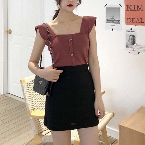 [셀럽하우스]데일리 HWKL7467 여성 스퀘어넥 민소매 여름 니트 나시 티셔츠