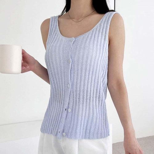 [셀럽하우스]데일리 AGXG1872 썸머룩 여성 단추 버튼 민소매 니트