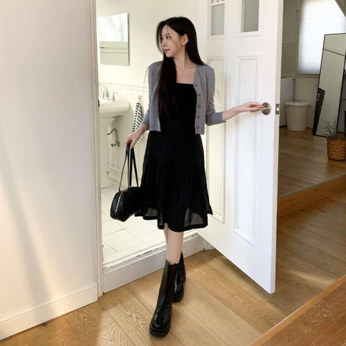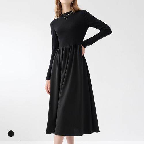 SAHINER 봄가을 여성 헨리넥 슬림 머메이드 니트 롱원피스 데일리룩 LWAQZ35