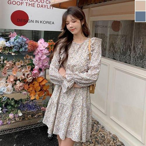 여성 플라워 긴팔 미니 원피스 1P 데일리 프릴 스커트 WE1F796
