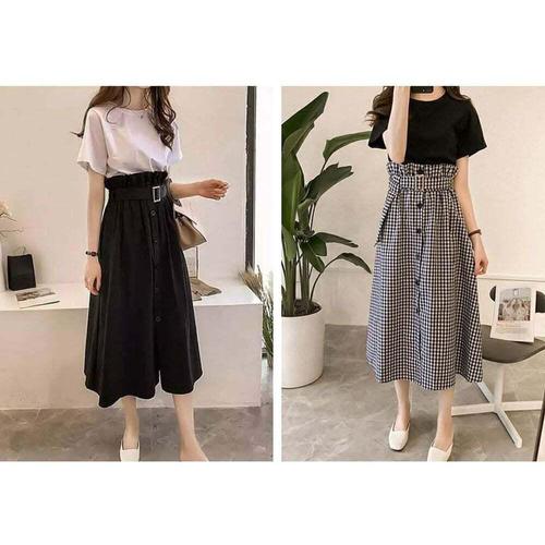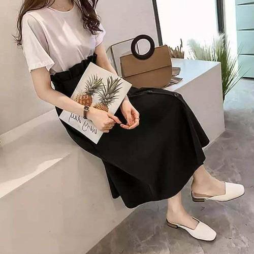 [셀럽하우스]반팔 DSERCWPU 롱치마 벨트 상하 세트 데일리 투피스 상하복