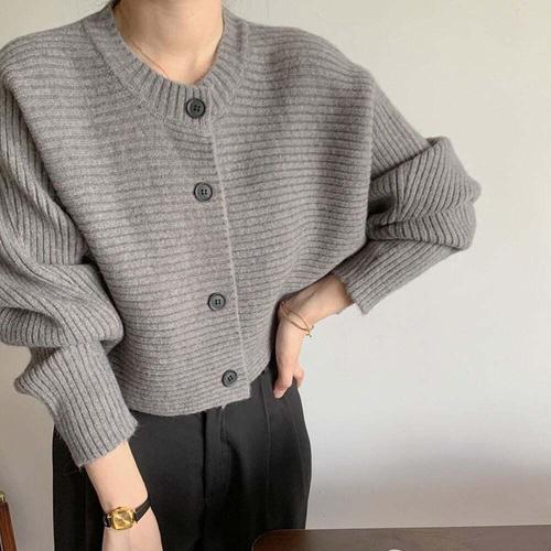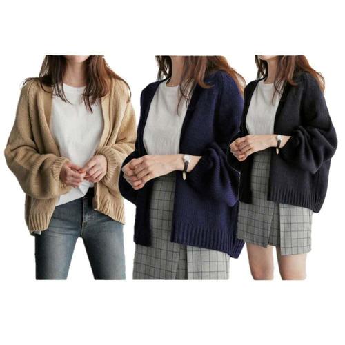 [셀럽하우스]여성 WVNC0825 루즈핏 단추없는 니트 가디건 벌룬소매 가오리핏