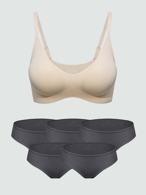 [도로시와] [SET]풀샷브라 심리스 컴포트 브라1+[5PACK] 베이직 코튼 삼각팬티_차콜colors