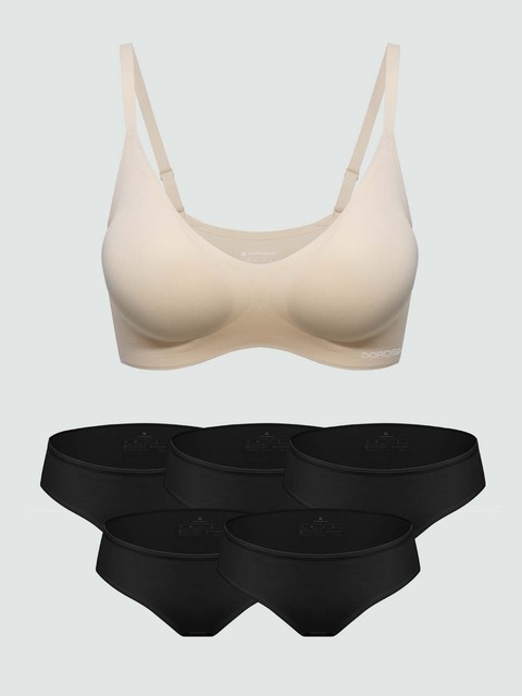 [도로시와] [SET]풀샷브라 심리스 컴포트 브라1+[5PACK] 베이직 코튼 삼각팬티_블랙colors