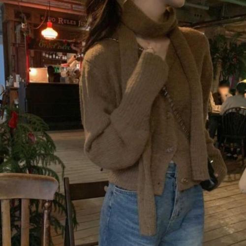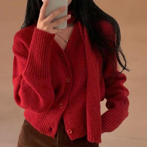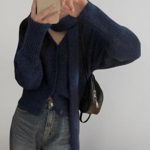 [신상오픈런]여성용 루즈핏 브이넥 타이넥 도톰 니트 가디건