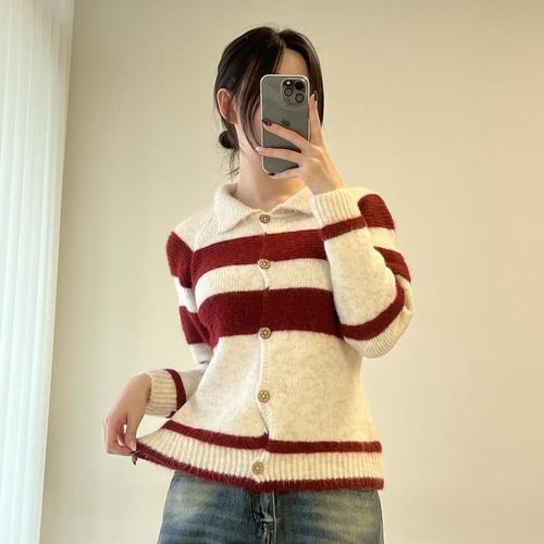 [옷자락] 여자 나그랑 배색 단가라 카라 도톰 겨울니트 가디건