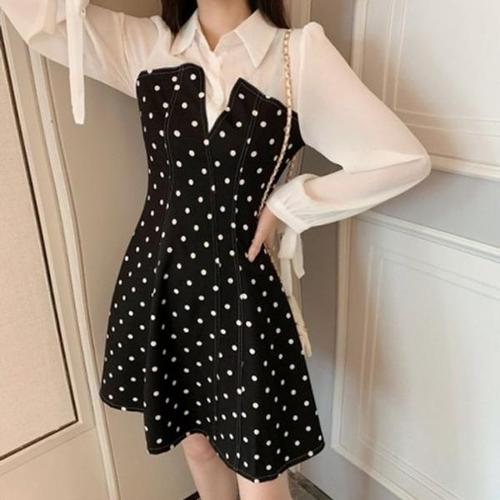 [오노마] ONM 여자 베이직 패션 레이어드st A라인 도트원피스 (S8055510)